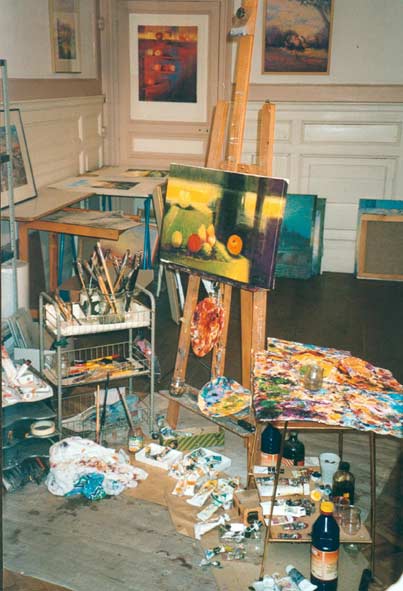 Mais en 2000, les bâtiments sont vendus et les artistes déménagent. C'est alors que le peintre remarque une vitrine à vendre entre son lieu d'habitation et le centre ville qui est à deux pas. Il décide de l'acheter et s'y établit (photos), y installe aussi l'odeur magique de tous ses ateliers. Grâce à la grande ouverture et à une petite porte vitrée à l'arrière de l'atelier, le petit lieu est très lumineux, essentiel à l'artiste.